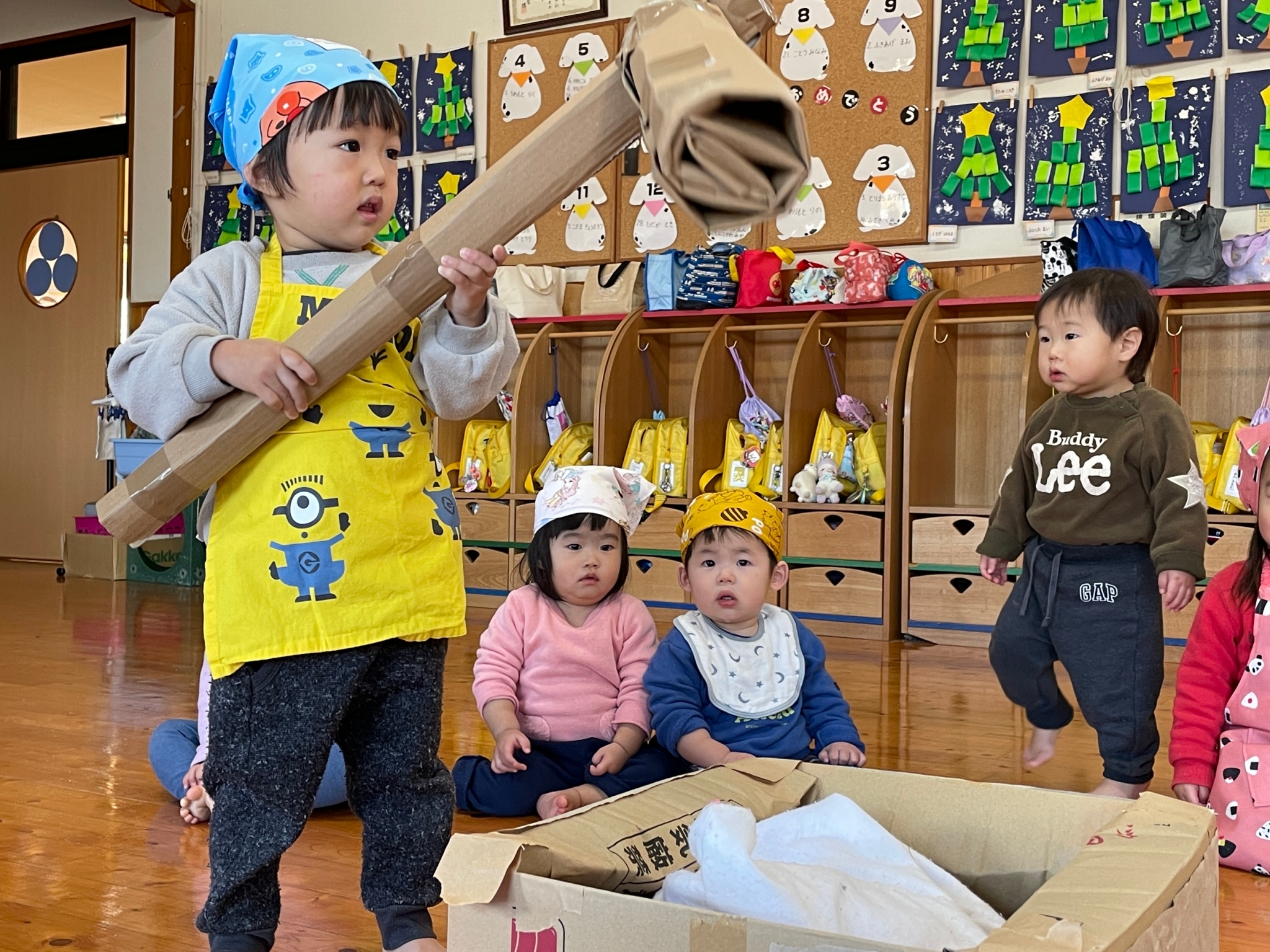 12月27日みわっ子達が元気にお餅をつきました!ぺったんこぺったんこお歌を歌いながら楽しくついて丸めて美味しくいただきました!